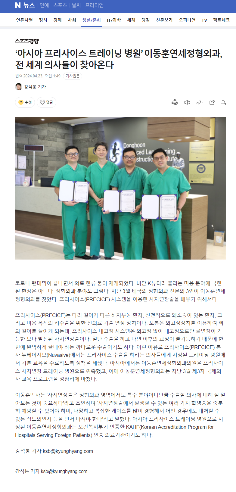 이동훈연세정형외과는 아시아 프리사이스 트레이닝 병원입니다.